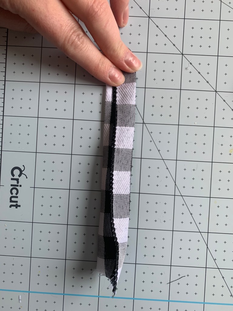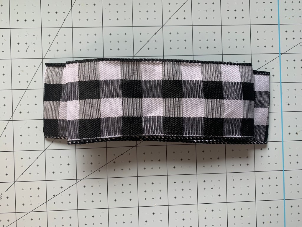Next, take the 6 inch ribbon and glue the length ends of the ribbon together as seen below.
