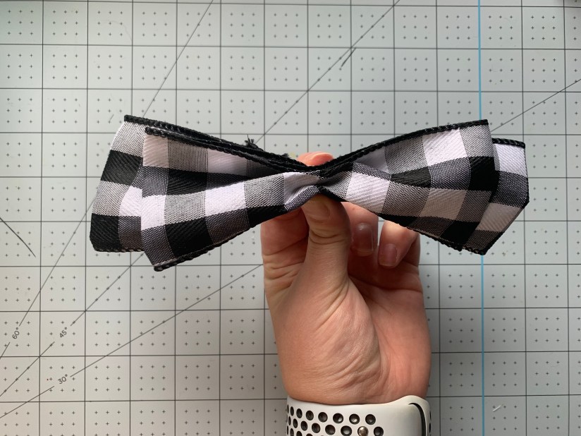 I use 2.5 inch ribbon but depending on the look you are going for, you can use whatever thickness works best for you. I also find that using ribbon with wire in it makes for a nicer looking bow.
