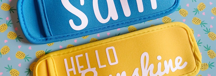 These are such a hit with kids and are so easy to customize! You can add a name or a cute Summer saying by applying heat transfer vinyl to them. I use my Cricut EasyPress Mini to make these as the small surface size is perfect to get between the raised edges of the holder. I recommend using a piece of teflon or some other protectant between the holder and your heat source.